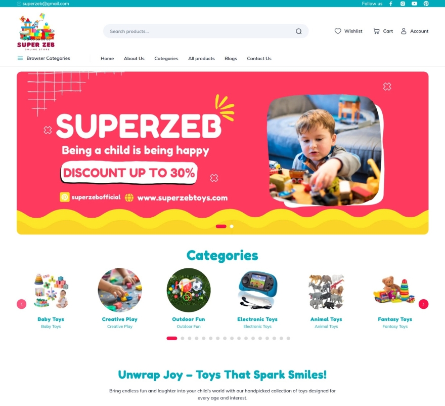 I contributed to Super Zeb Toys (superzebtoys.com), a Shopify-based website, by managing and maintaining product categories and collections. This organization helped customers easily navigate through different products, improving the overall shopping experience and ensuring that products were accessible and well-structured.